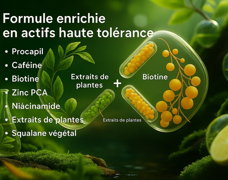 Notre gamme repose sur des actifs innovants et scientifiquement validés, agissant efficacement sur les causes profondes de la chute capillaire, notamment la régulation de l’alpha-réductase.